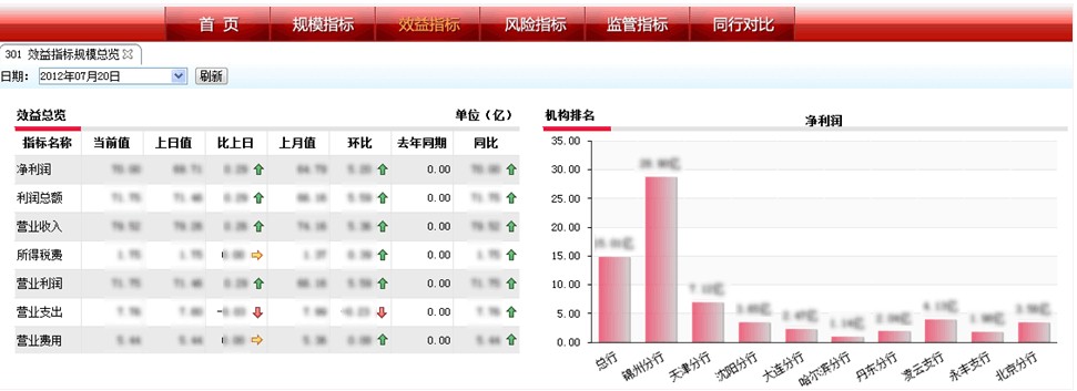 領(lǐng)導(dǎo)駕駛艙是對于管理者開放的模塊,包括管理者日常工作中最關(guān)注的指標(biāo),并且通過直觀的圖形的方式展示,便于管理者快速了解銀行的經(jīng)營狀況以及進(jìn)行風(fēng)險的預(yù)警。