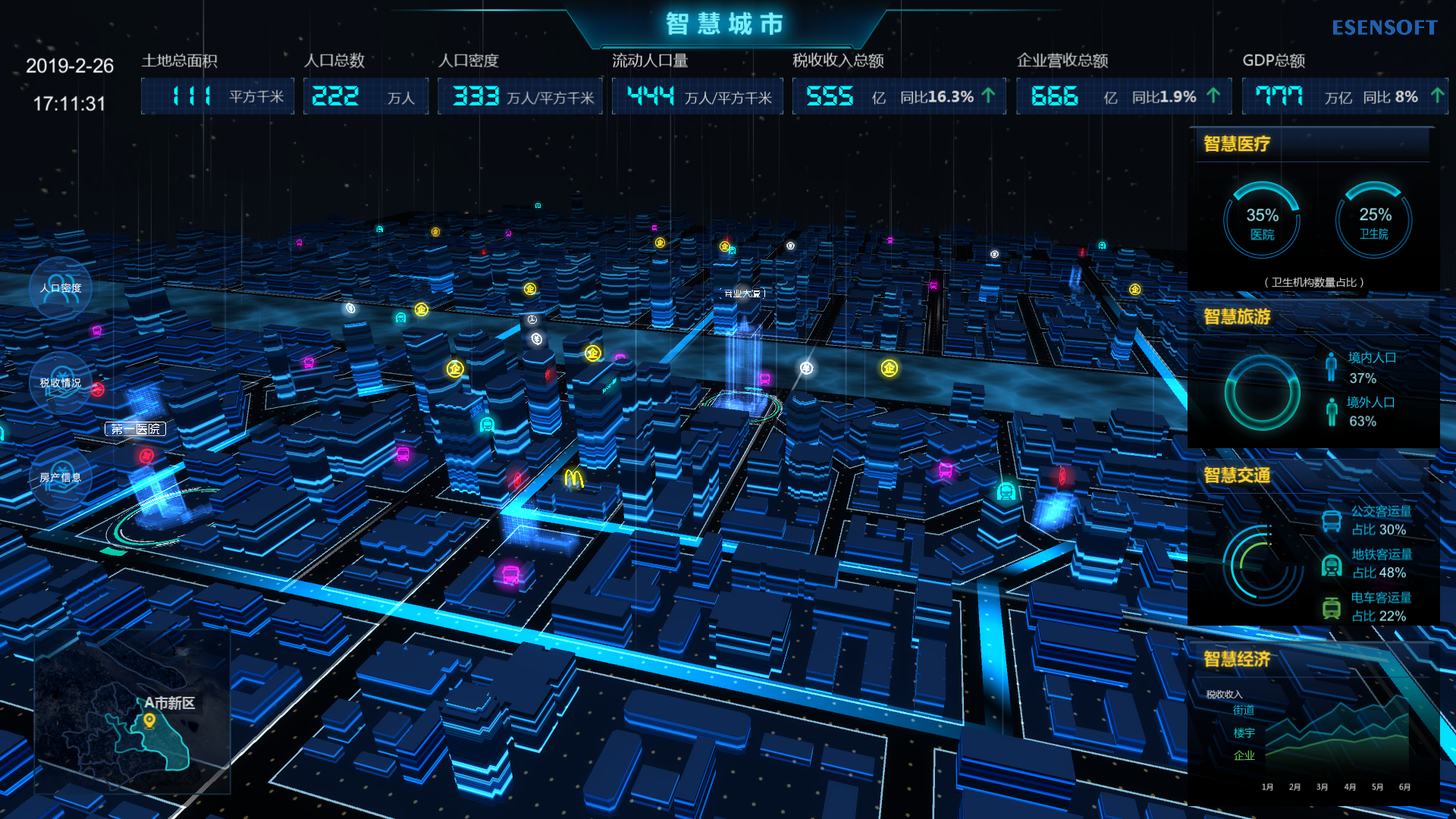 ABI一站式數據分析平臺支持動態炫酷的酷屏分析,獨特的3D全景視角,自由快捷制作各類交互式常規屏和大屏報表,真正達到設計能走多遠,數據可視化展現就能達到多遠的境界。