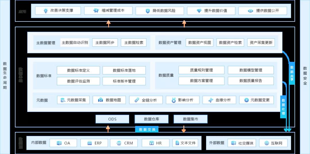 也正是憑借大數(shù)據(jù)領(lǐng)域的經(jīng)驗沉淀,億信華辰積極布局?jǐn)?shù)據(jù)治理領(lǐng)域,百余次產(chǎn)品迭代,打磨出睿治智能數(shù)據(jù)治理平臺并榮獲DAMA中國數(shù)據(jù)治理優(yōu)秀產(chǎn)品獎,形成包含元數(shù)據(jù)管理、數(shù)據(jù)標(biāo)準(zhǔn)管理、數(shù)據(jù)質(zhì)量管理、主數(shù)據(jù)管理、數(shù)據(jù)資產(chǎn)管理、數(shù)據(jù)安全管理、數(shù)據(jù)交換管理、數(shù)據(jù)處理管理、數(shù)據(jù)生命周期管理等九大功能模塊的數(shù)據(jù)治理產(chǎn)品方案,可自由組合快速滿足政企用戶數(shù)據(jù)治理全場景應(yīng)用,助力數(shù)據(jù)標(biāo)準(zhǔn)落地,提升數(shù)據(jù)質(zhì)量,實現(xiàn)數(shù)據(jù)資產(chǎn)化。
