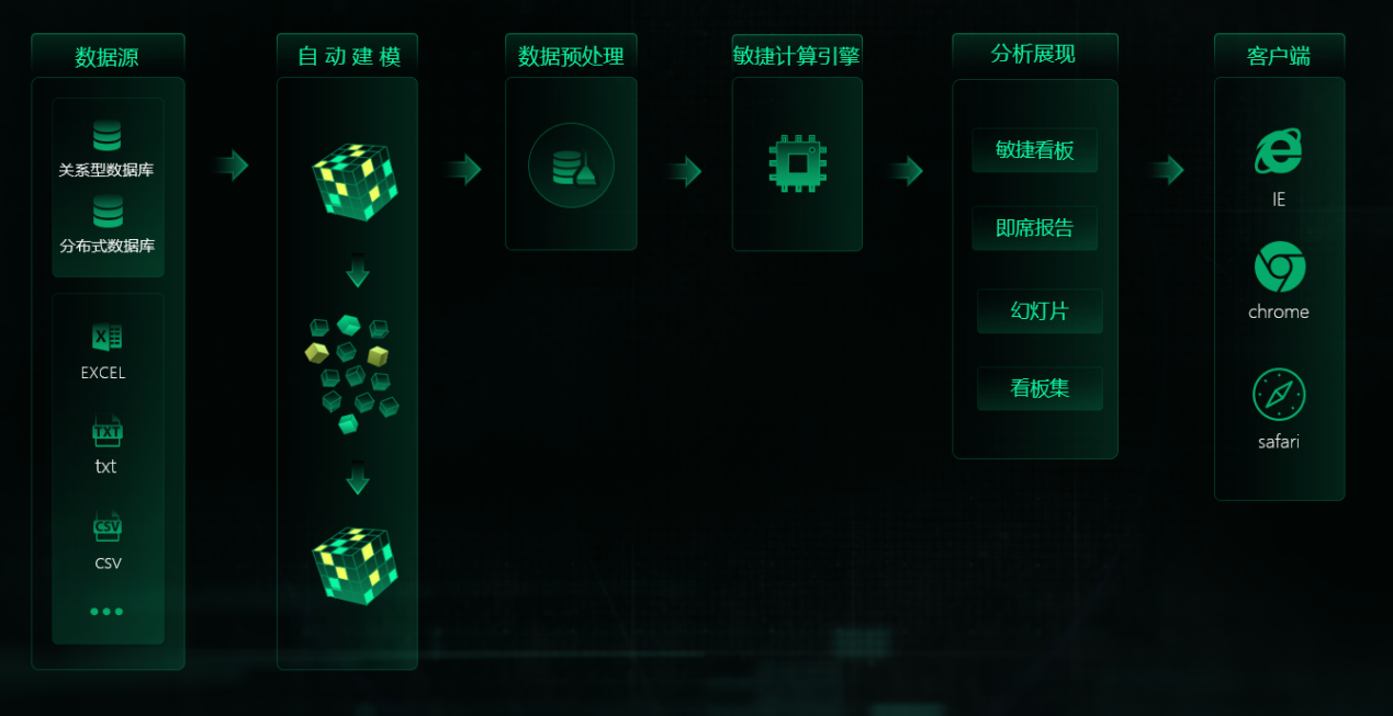 億信ABI,它滿足了業(yè)務(wù)人員渴求自主探索數(shù)據(jù)的訴求,提供了從數(shù)據(jù)導(dǎo)入、數(shù)據(jù)預(yù)處理、自動建模和數(shù)據(jù)可視化分析于一體的完整的解決方案。針對海量的業(yè)務(wù)數(shù)據(jù),用戶也能方便直觀地對數(shù)據(jù)進(jìn)行高效地探索和應(yīng)用。