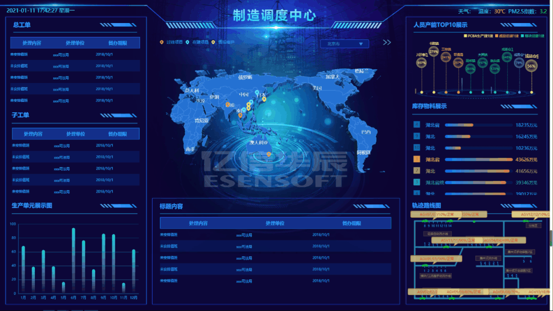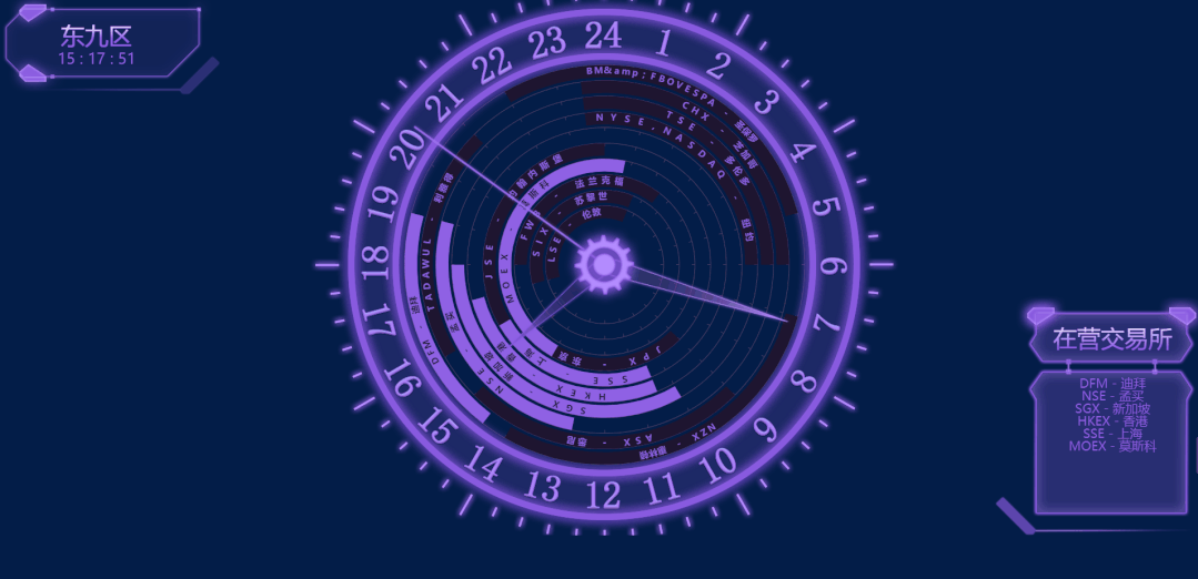 輔助圖表通常圍繞視覺中心的四周,起到錦上添花的作用,用來呈現(xiàn)次要指標,從各種維度進一步細化核心指標。時間類組件 時鐘