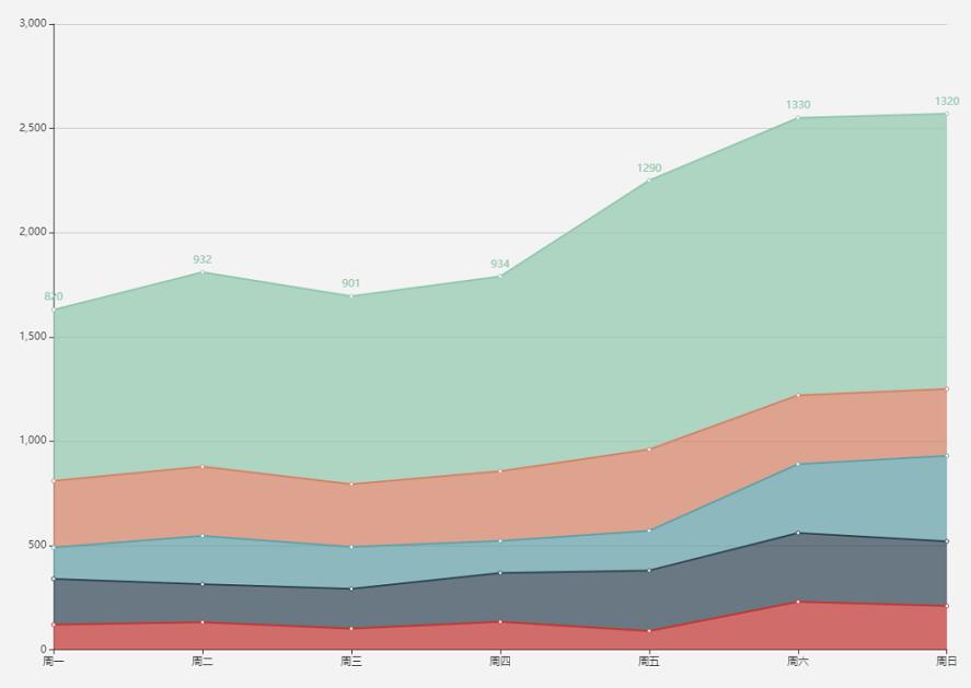 通常情況下,需要展示數據總量的業務,使用面積圖會更好些